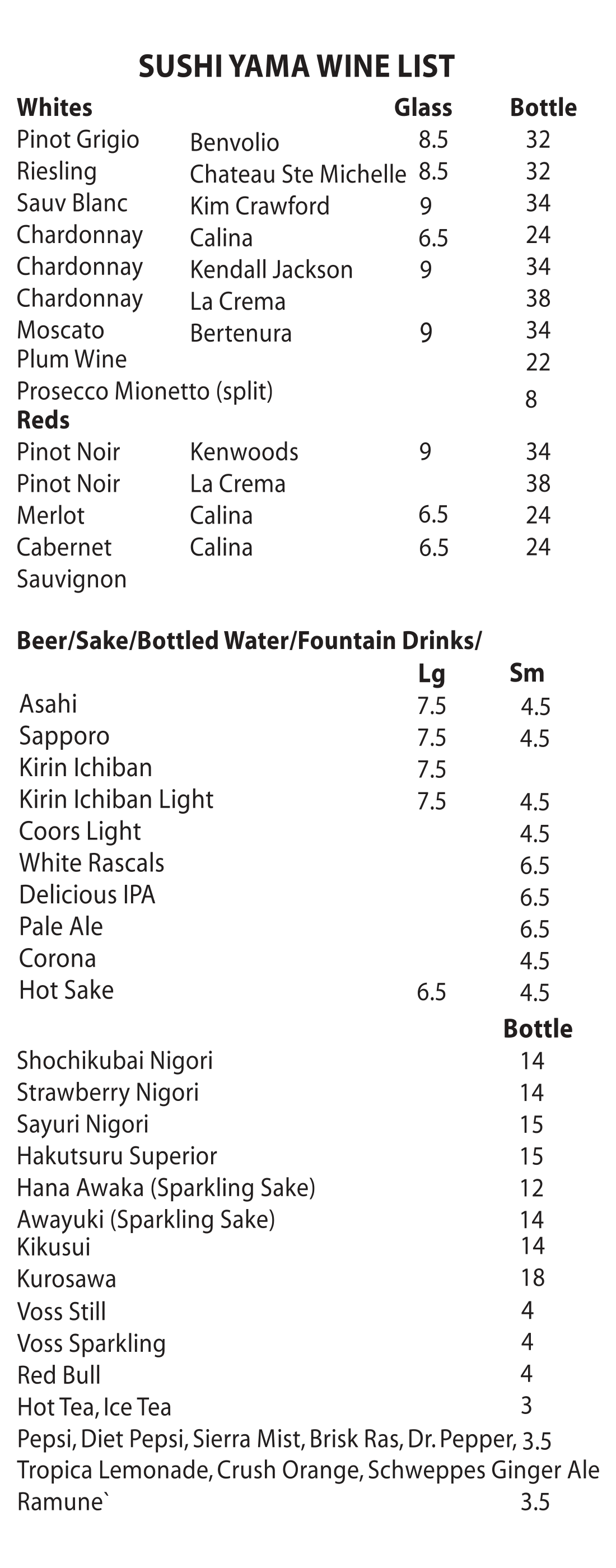 sushi yama menu
