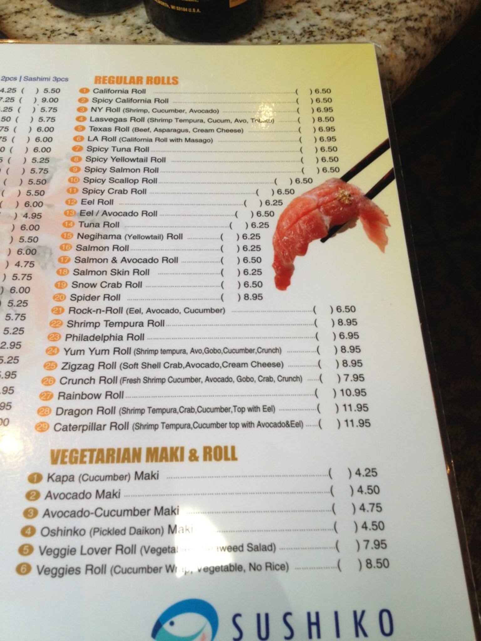 sushiko menu