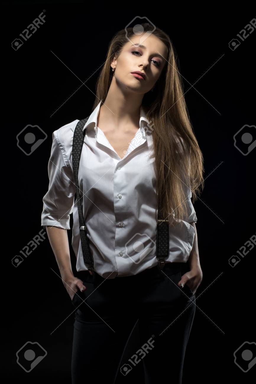 suspenders girl