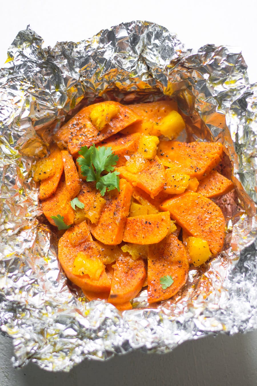 sweet potato on the grill in foil