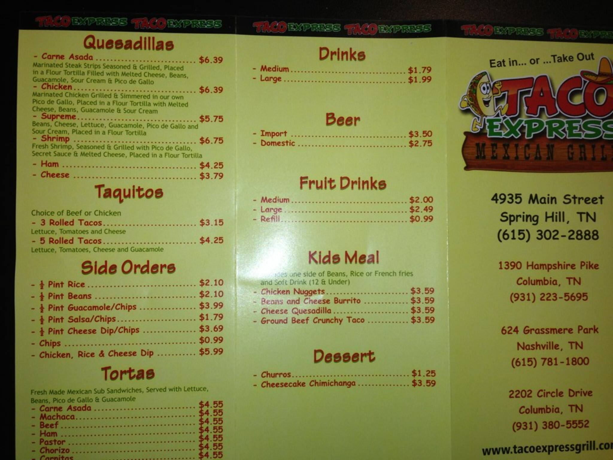 taco express menu
