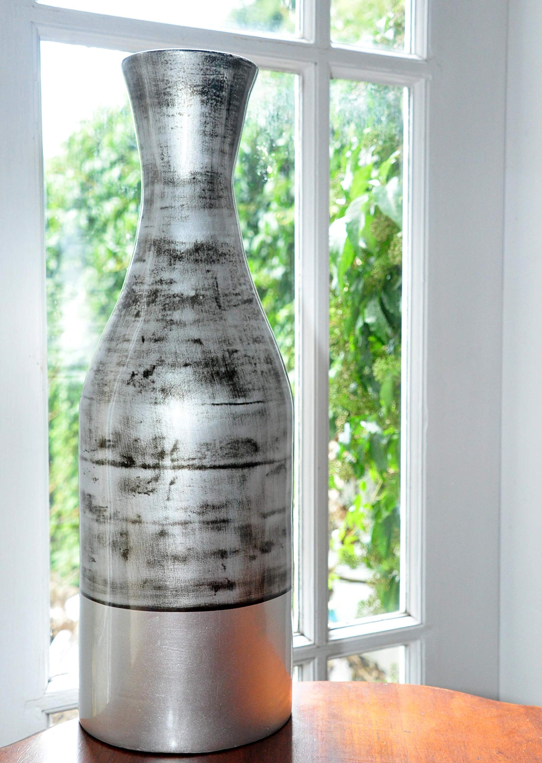 tall silver floor vase