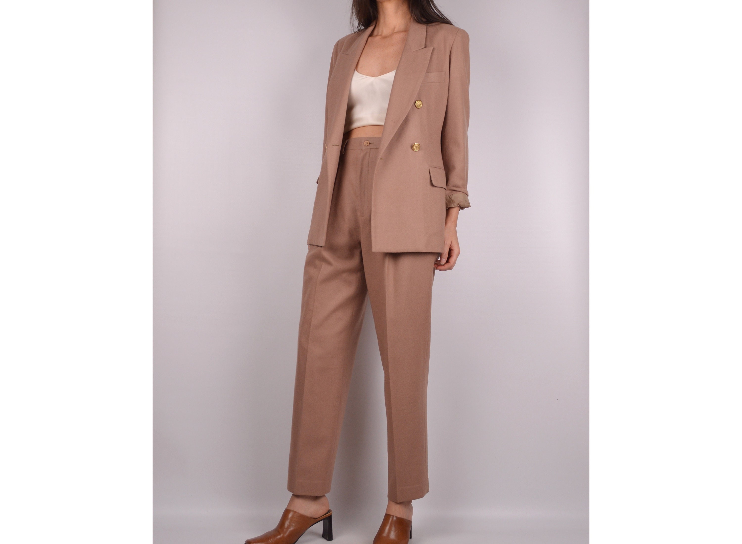 tan pant suit