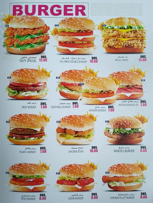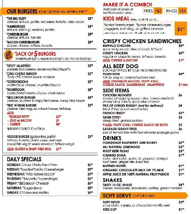 tasty burger menu