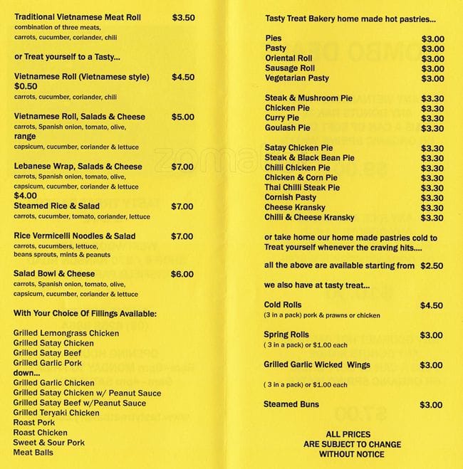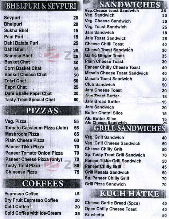 tasty treat menu