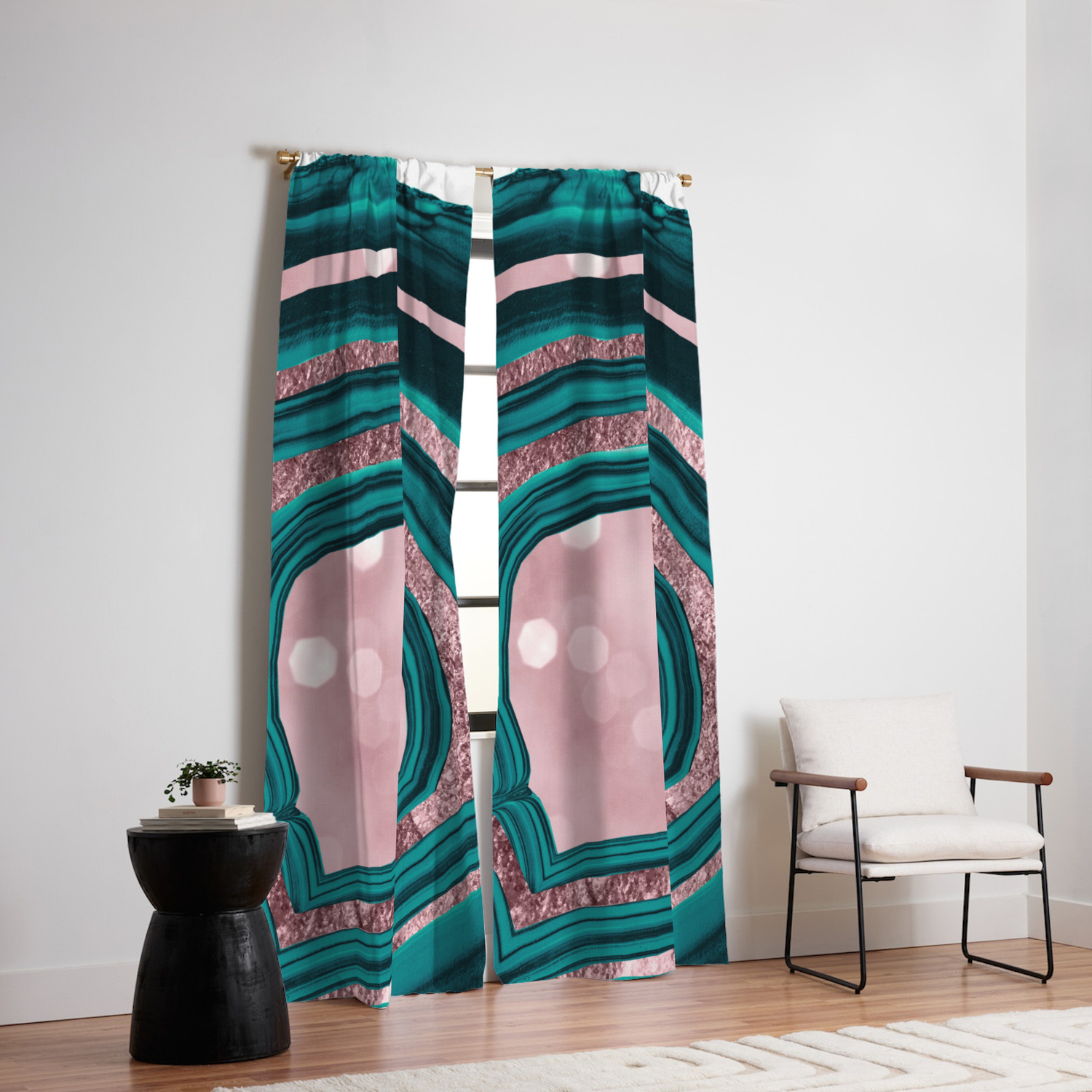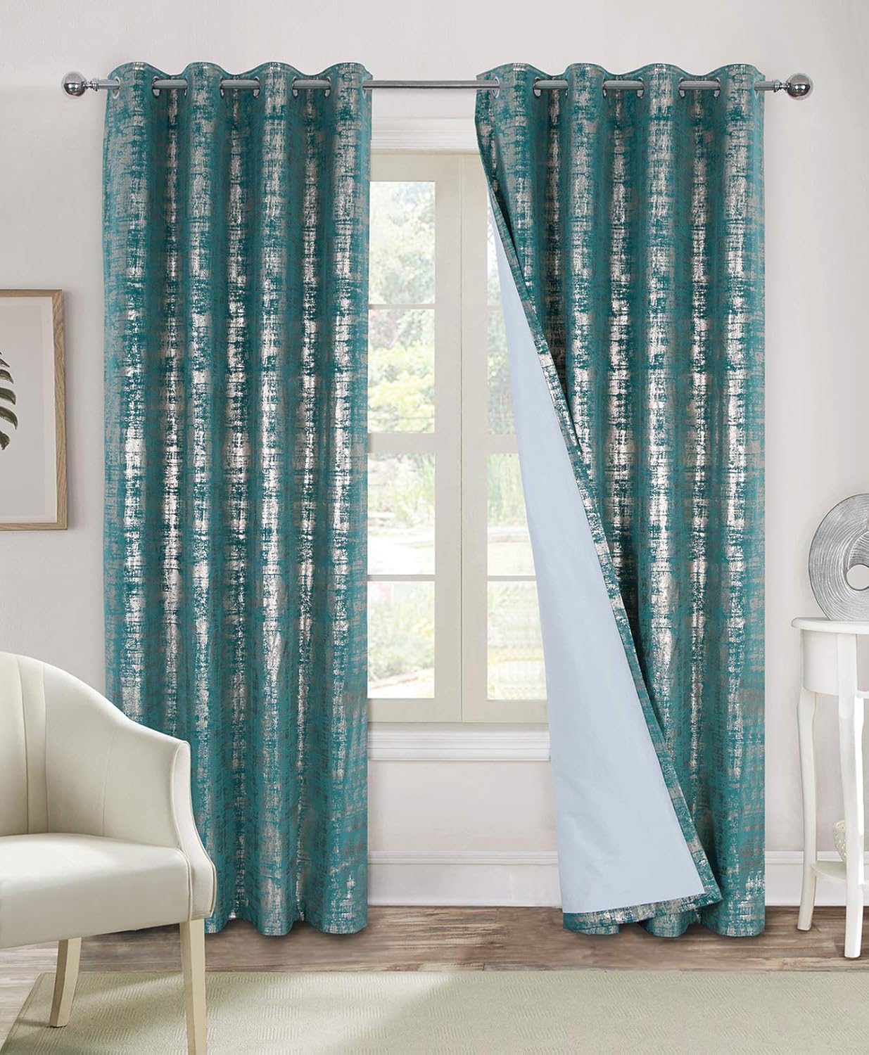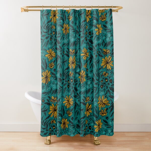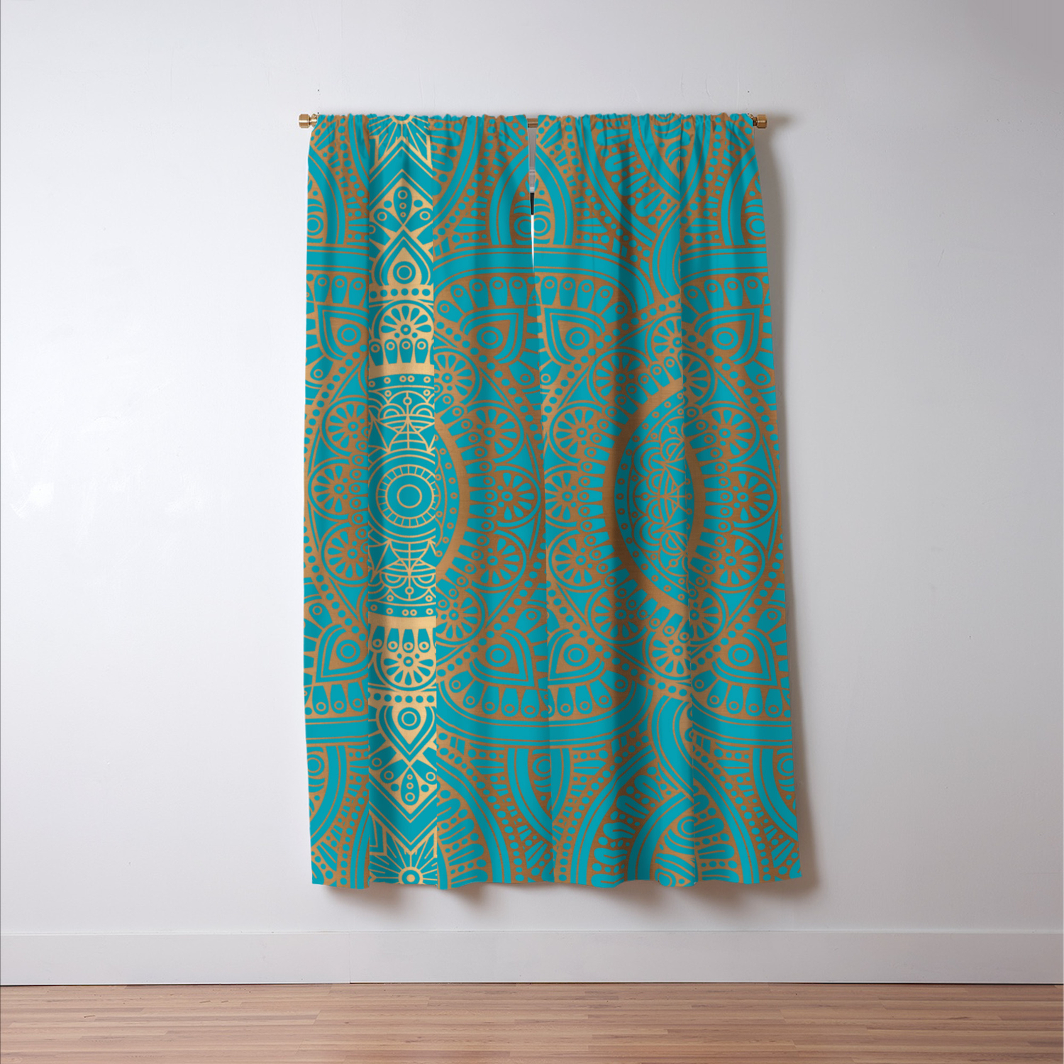teal and gold curtains
