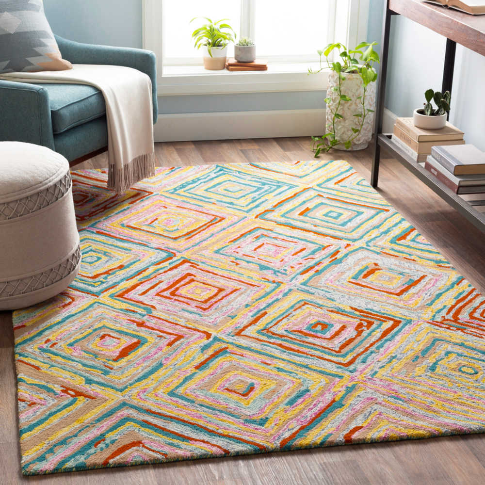teal and orange rug