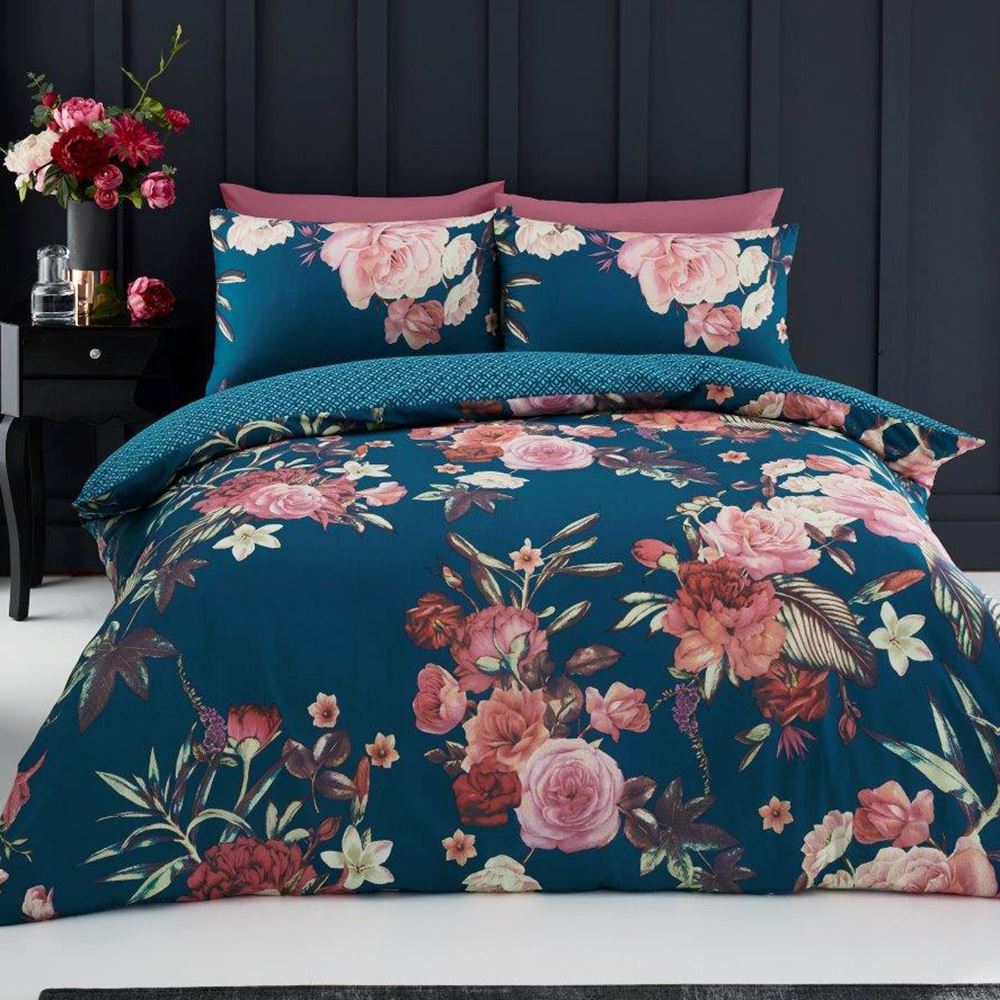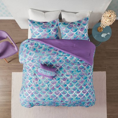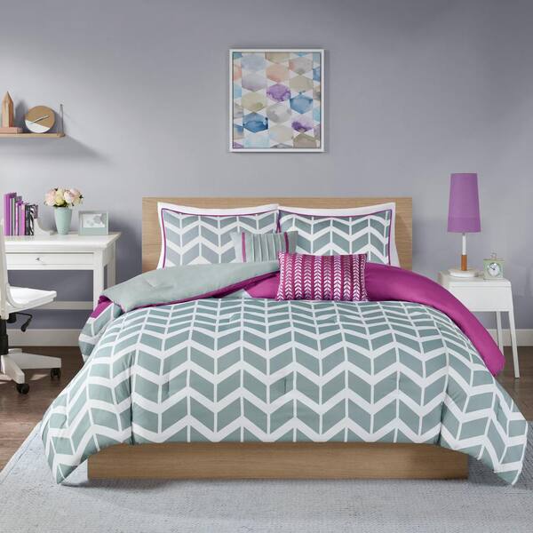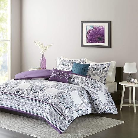teal and purple bedding