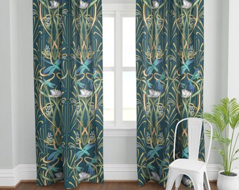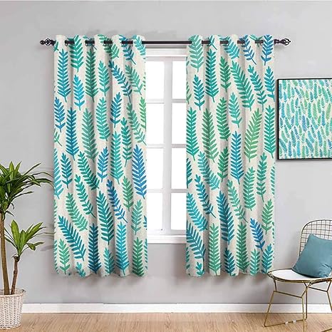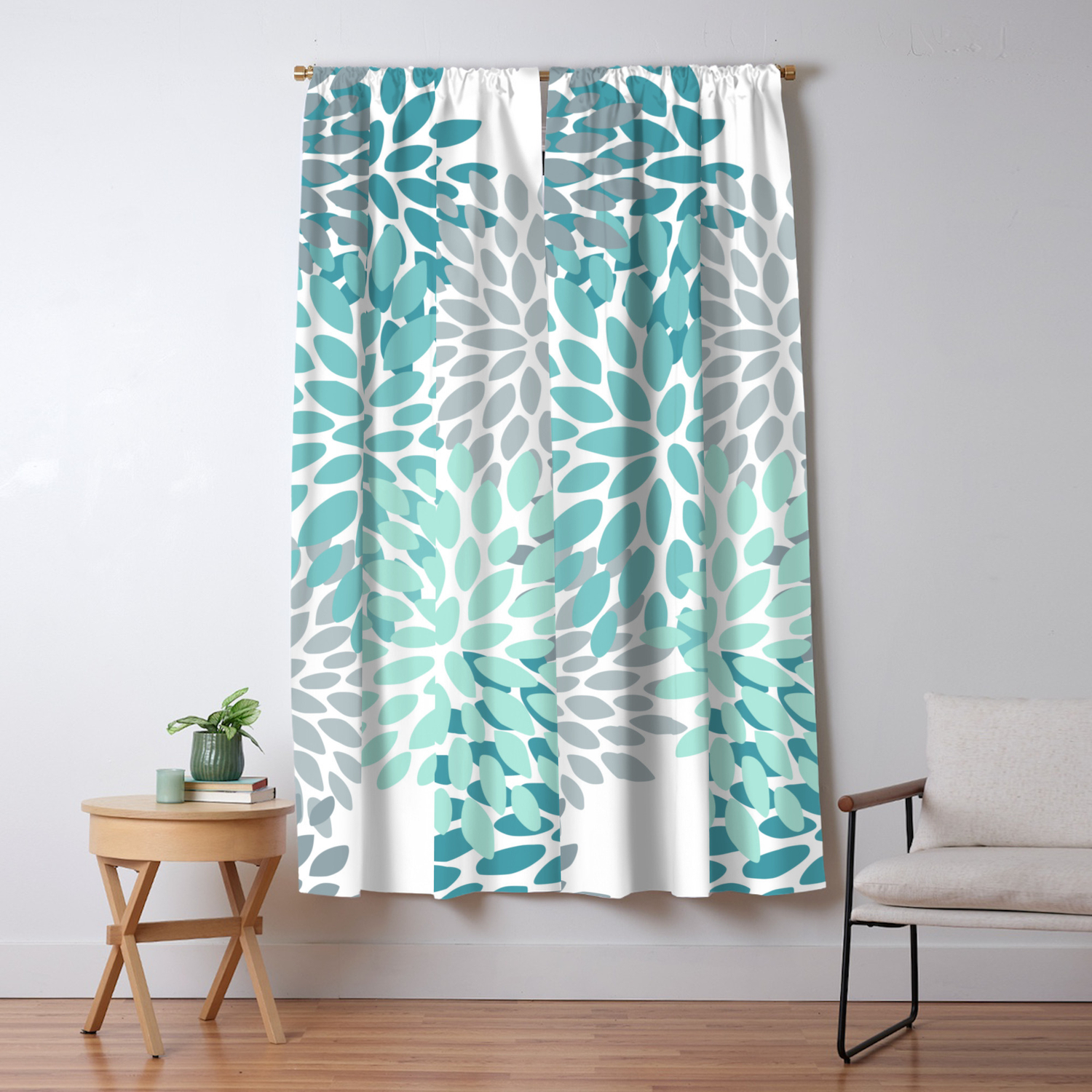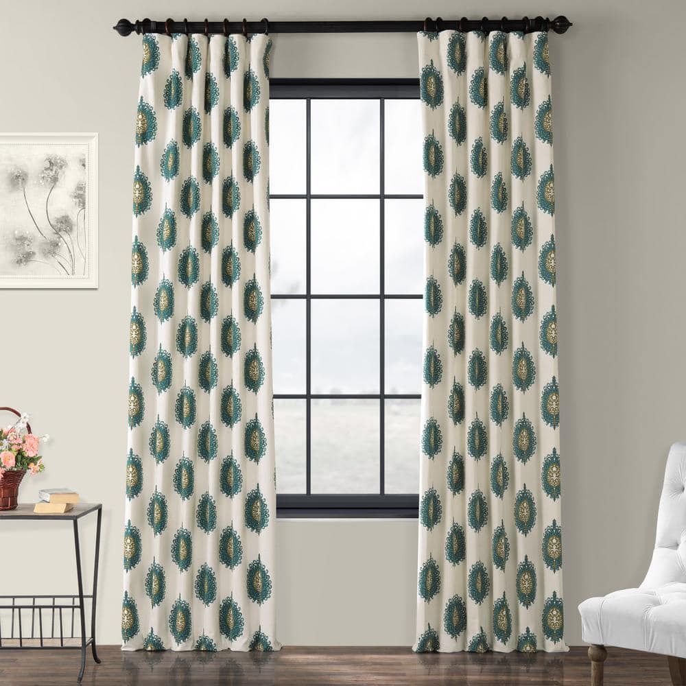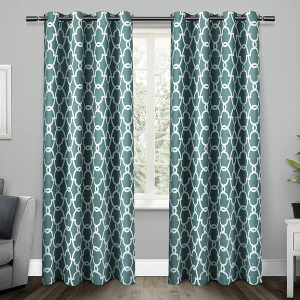 teal patterned curtains