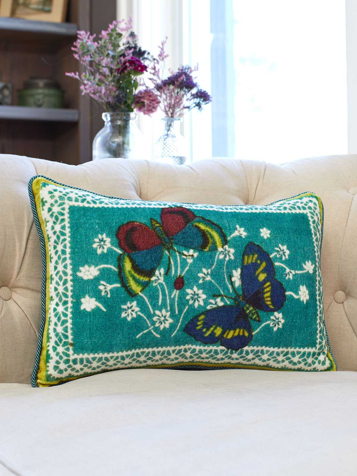 teal velvet cushions
