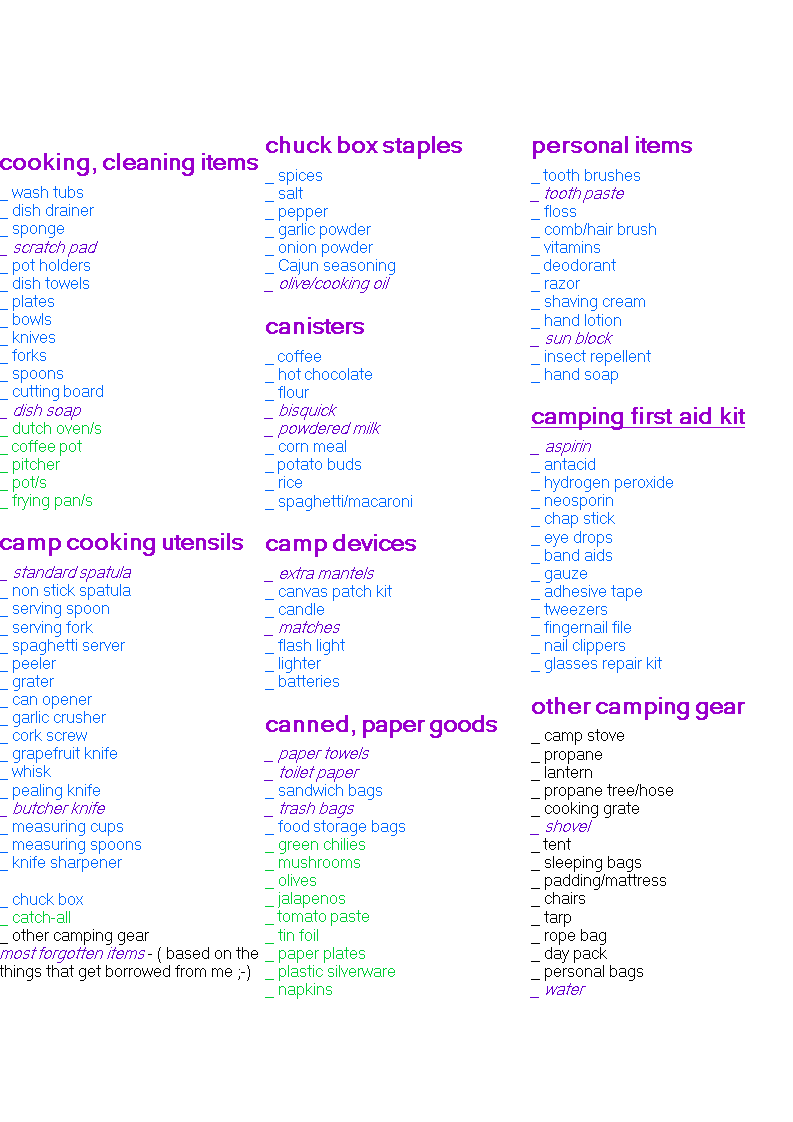 tent camping checklist