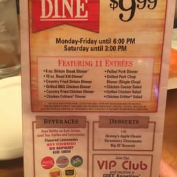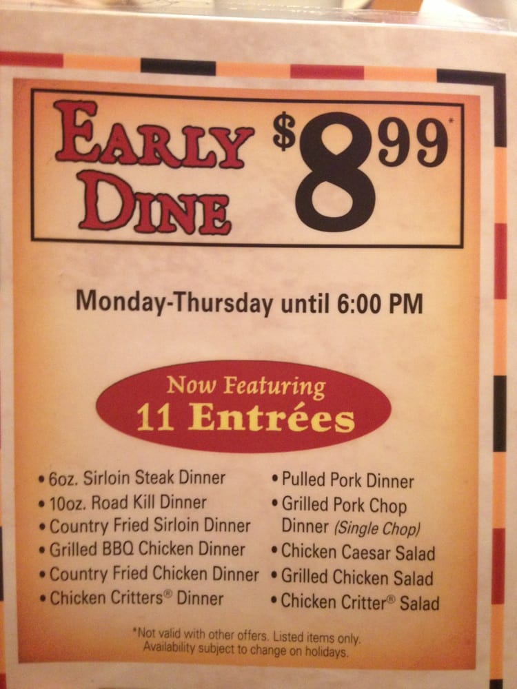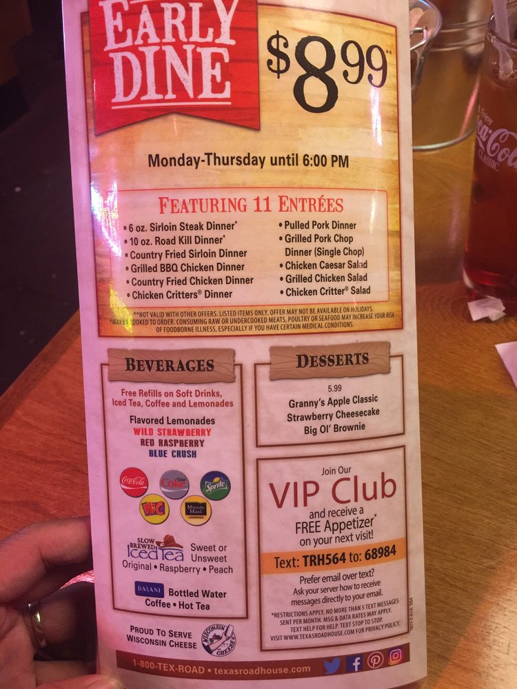 texas roadhouse early dine menu