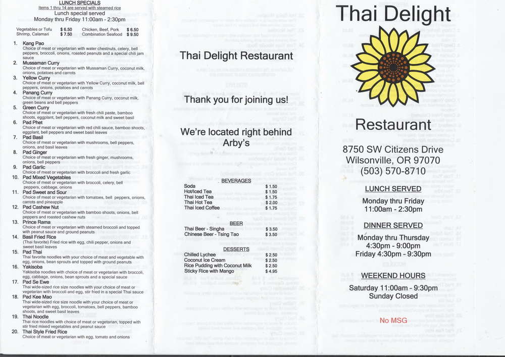 thai delight menu