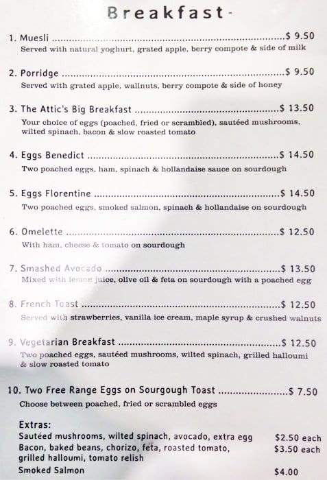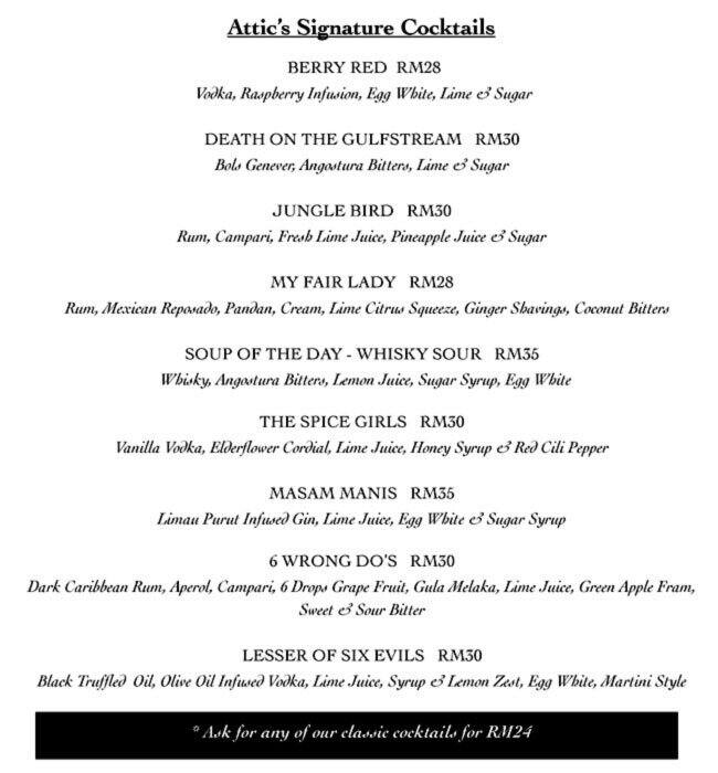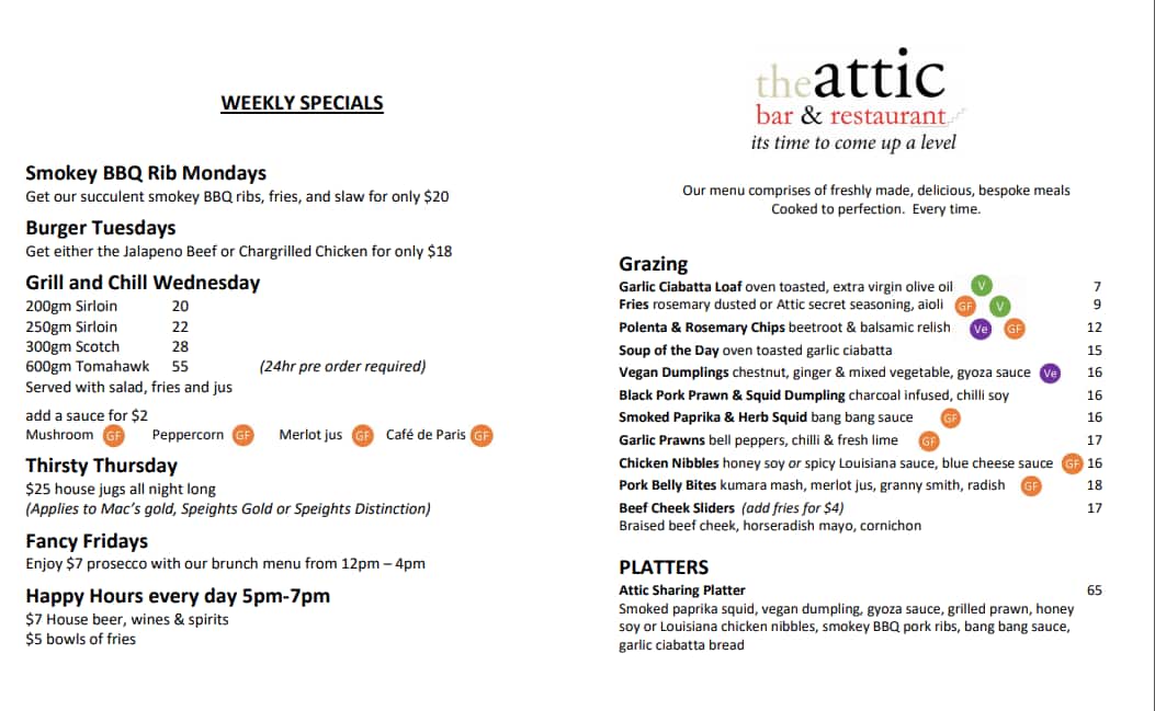 the attic menu