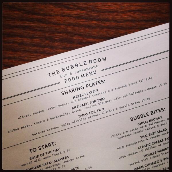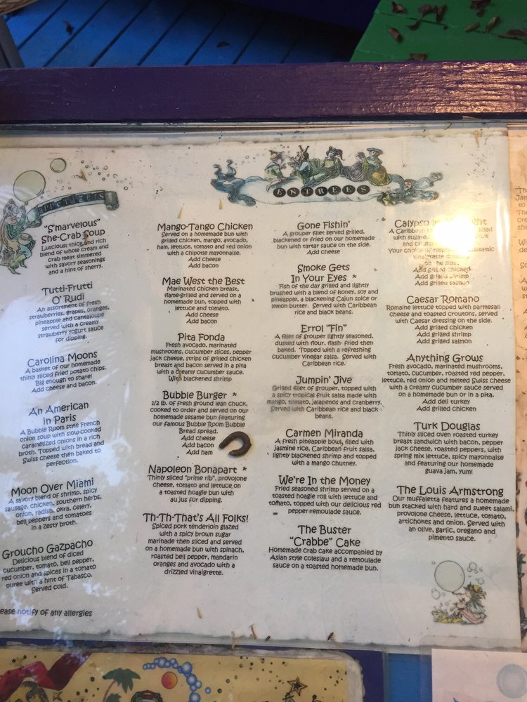 the bubble room menu