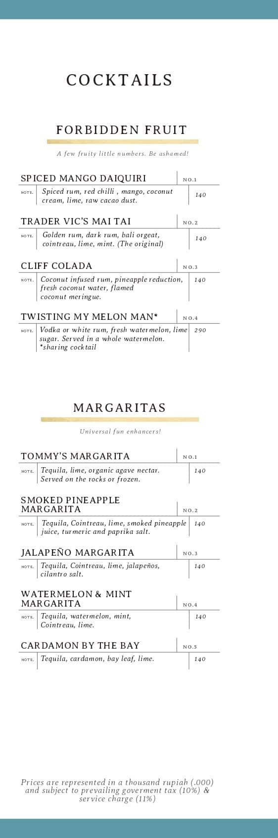 the cliff menu