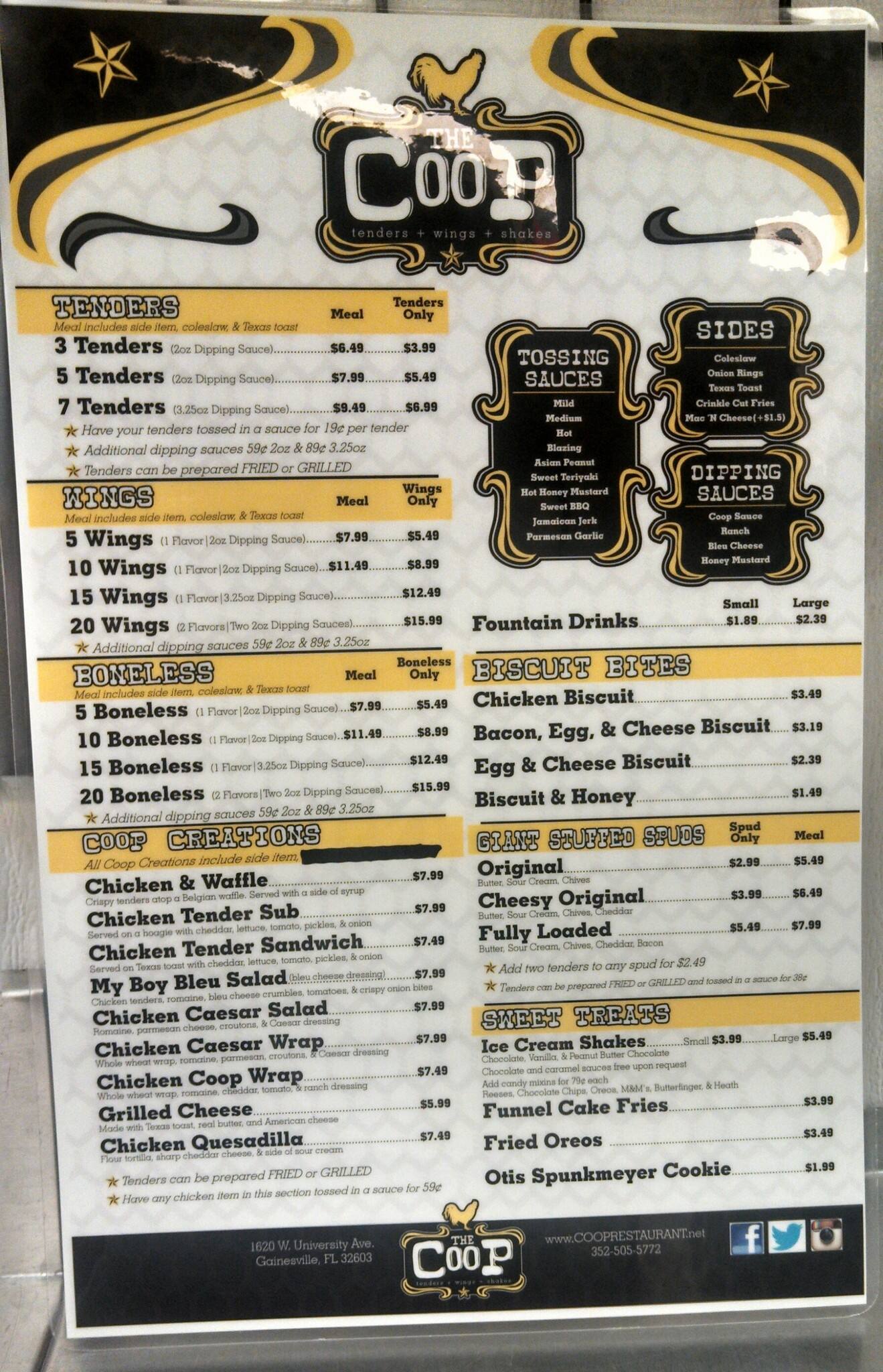 the coop menu