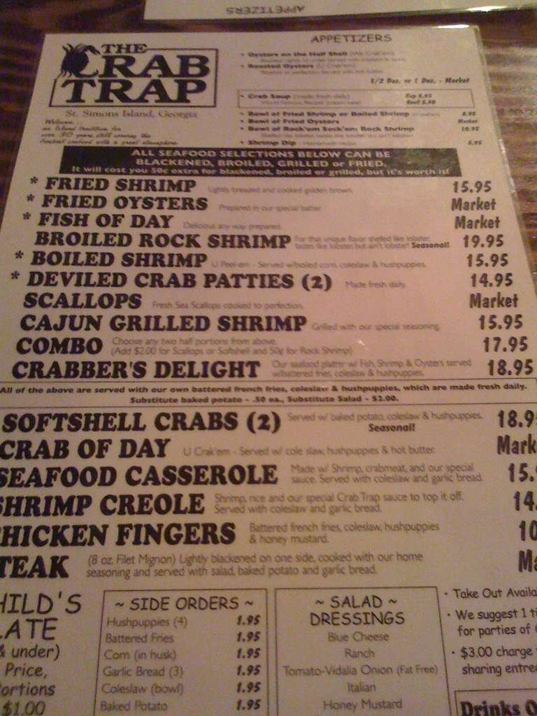 the crab trap menu