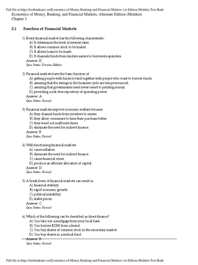the economics of money banking and financial markets