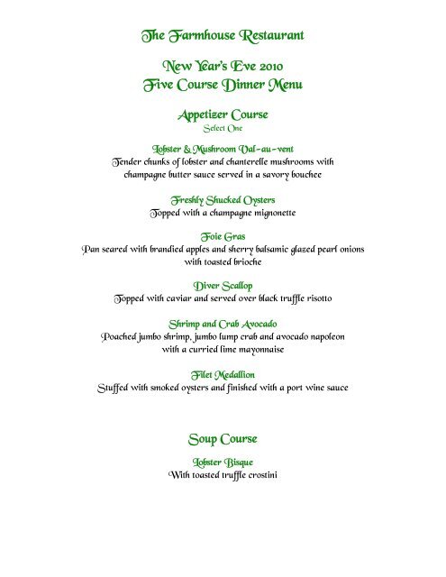 the farmhouse menu