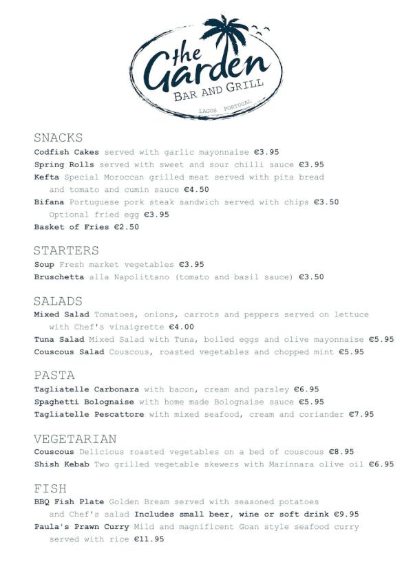 the garden menu