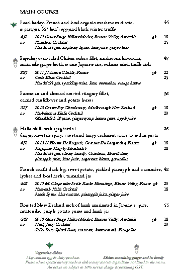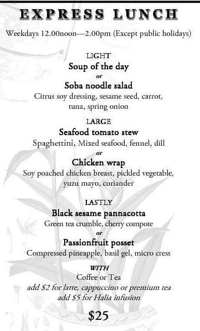 the halia menu