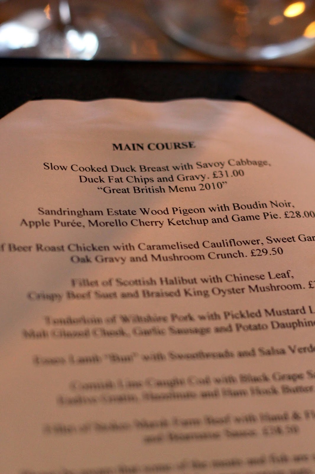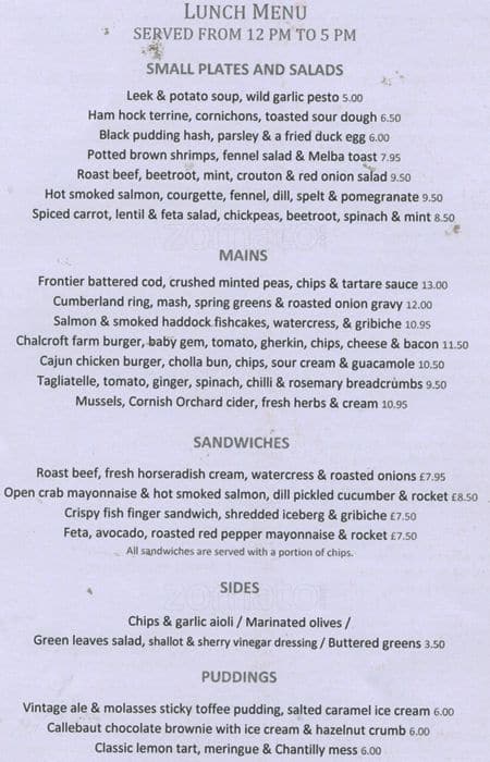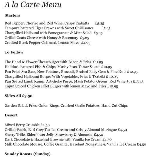 the hand and flowers menu