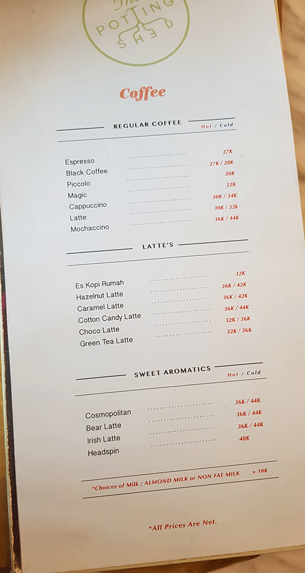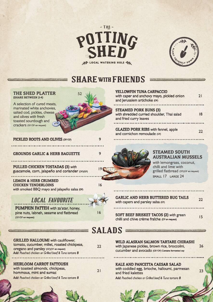 the potting shed menu