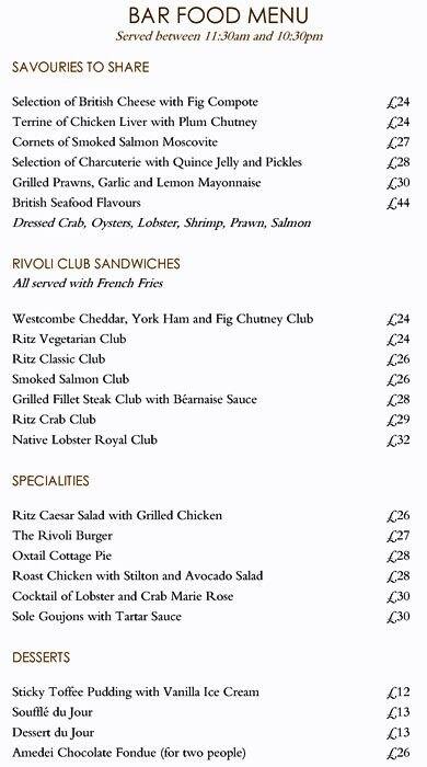 the ritz menu