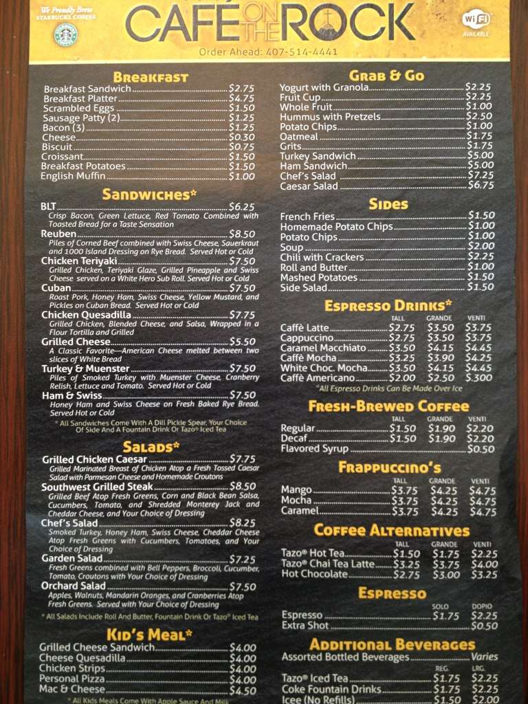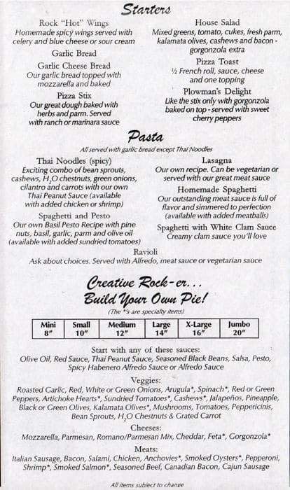 the rock menu