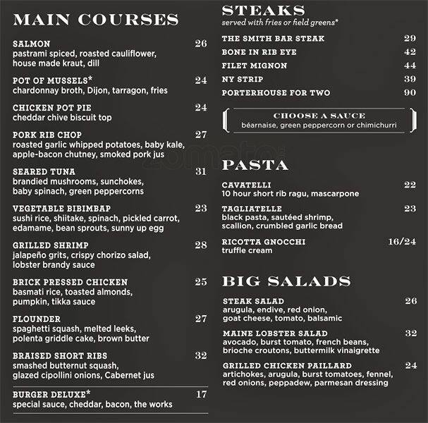the smith menu