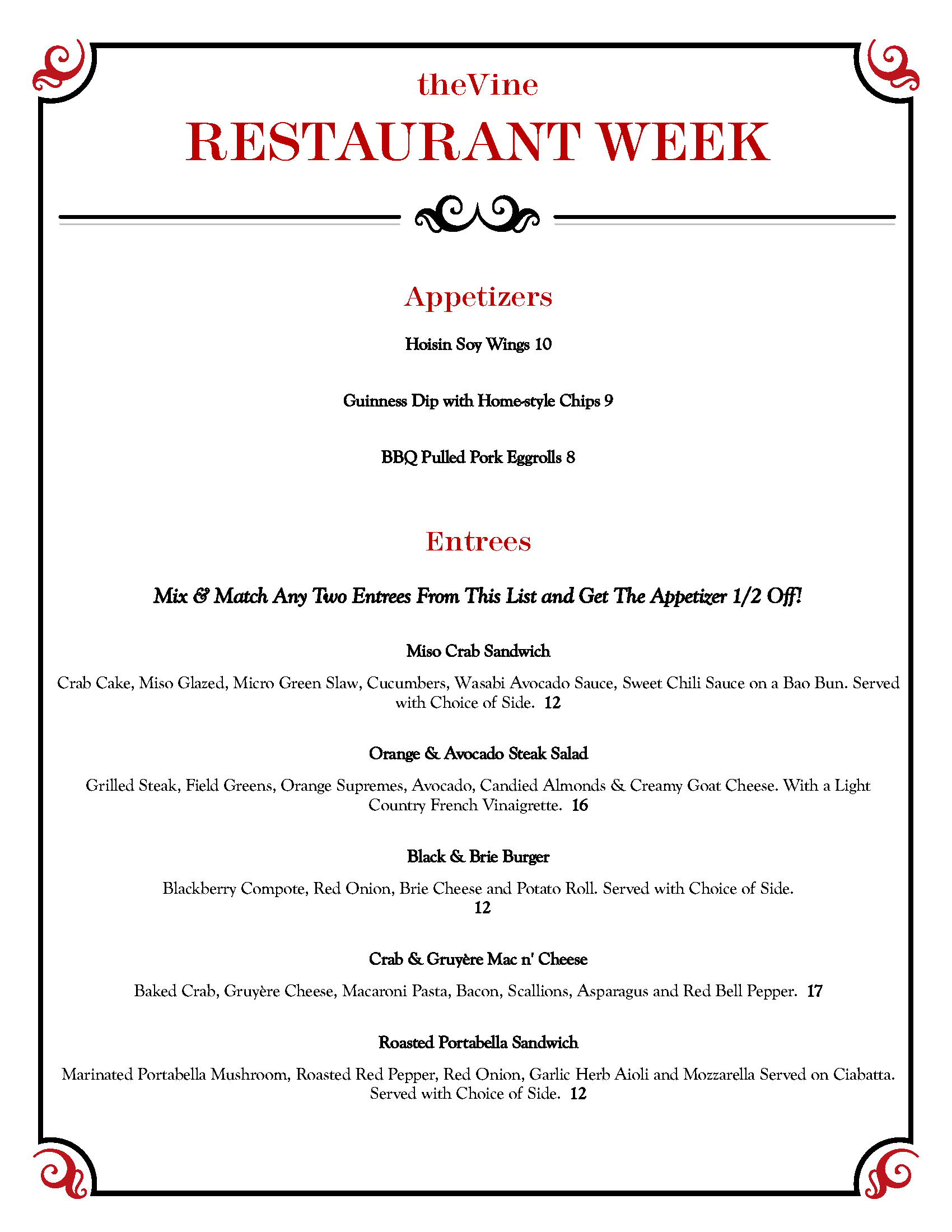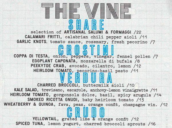 the vine menu