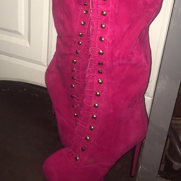 thigh high pink boots