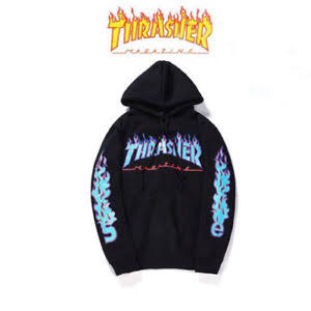 thrasher hoodie blue flame