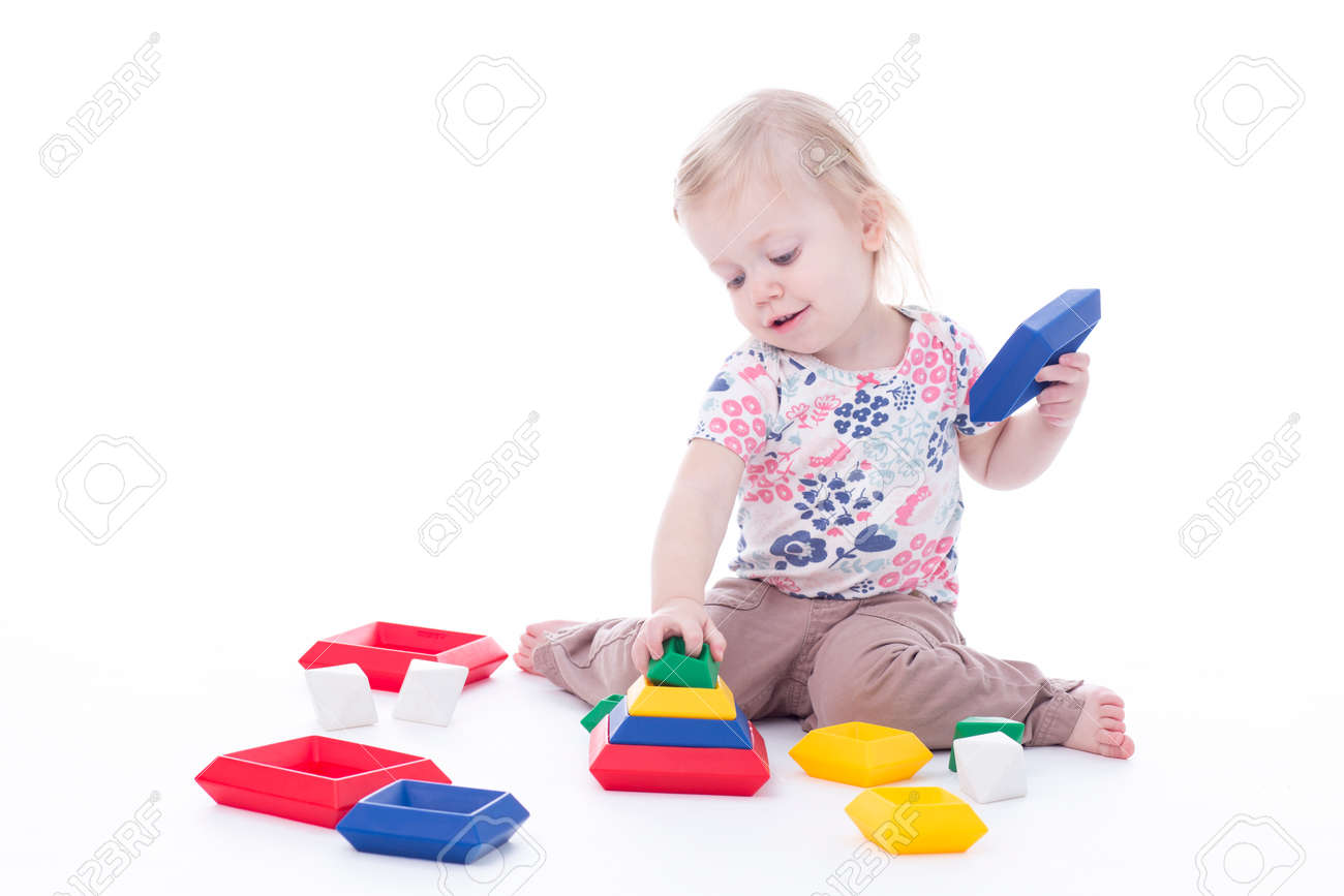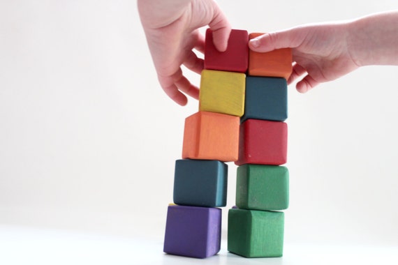 toddlers stacking blocks