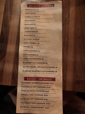 toro burger menu