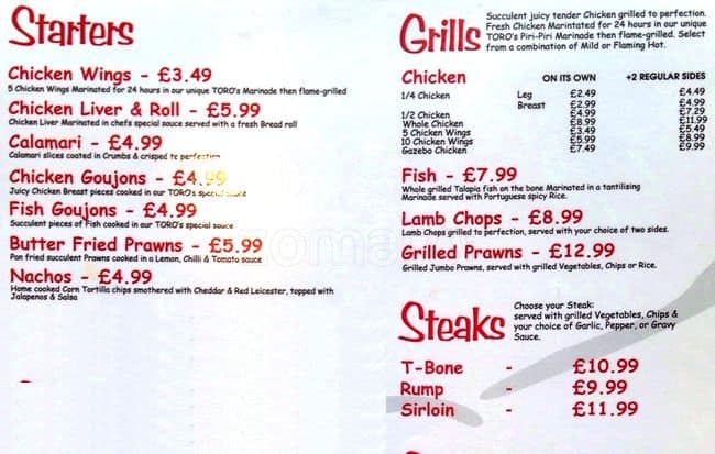 toros steakhouse menu