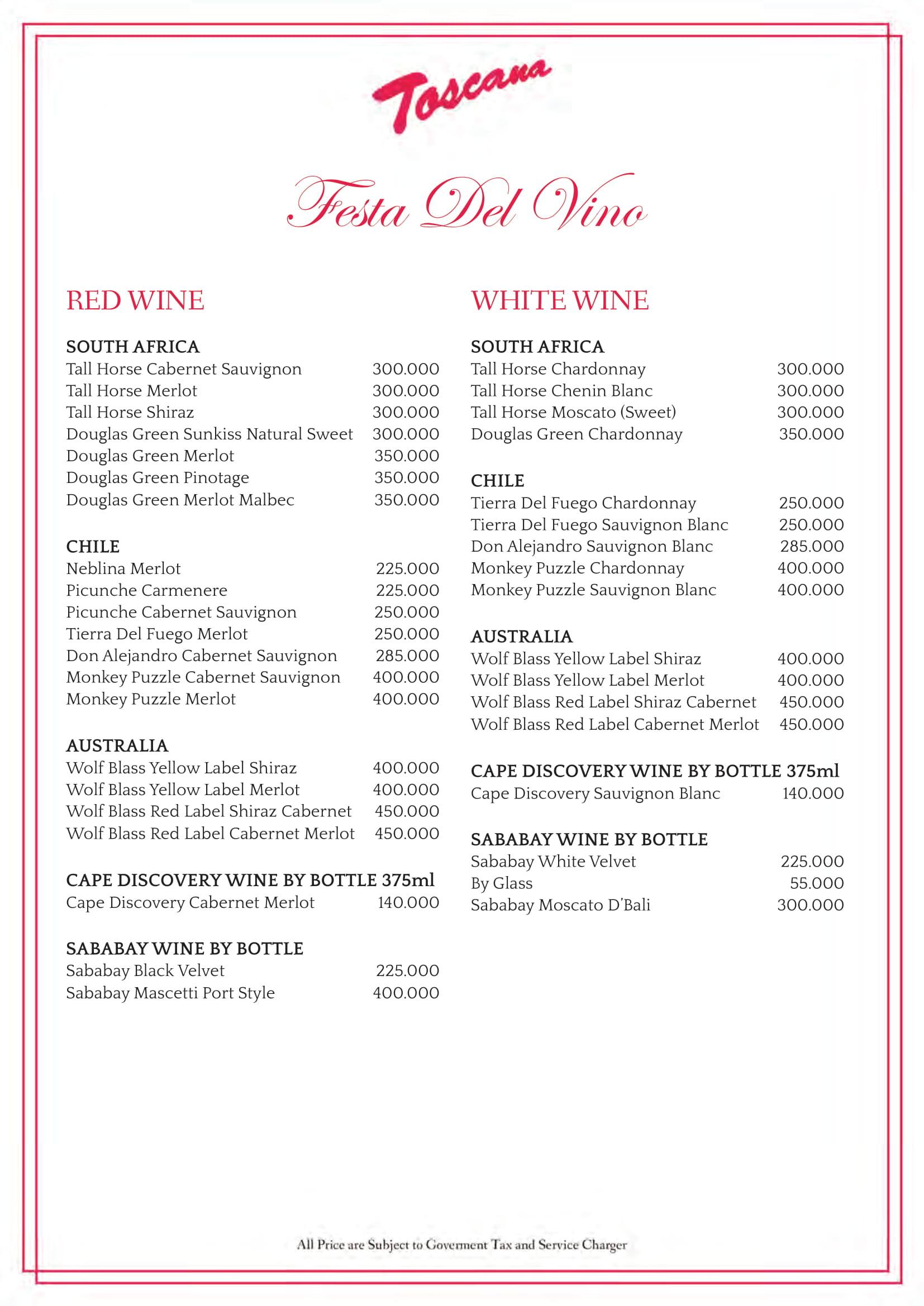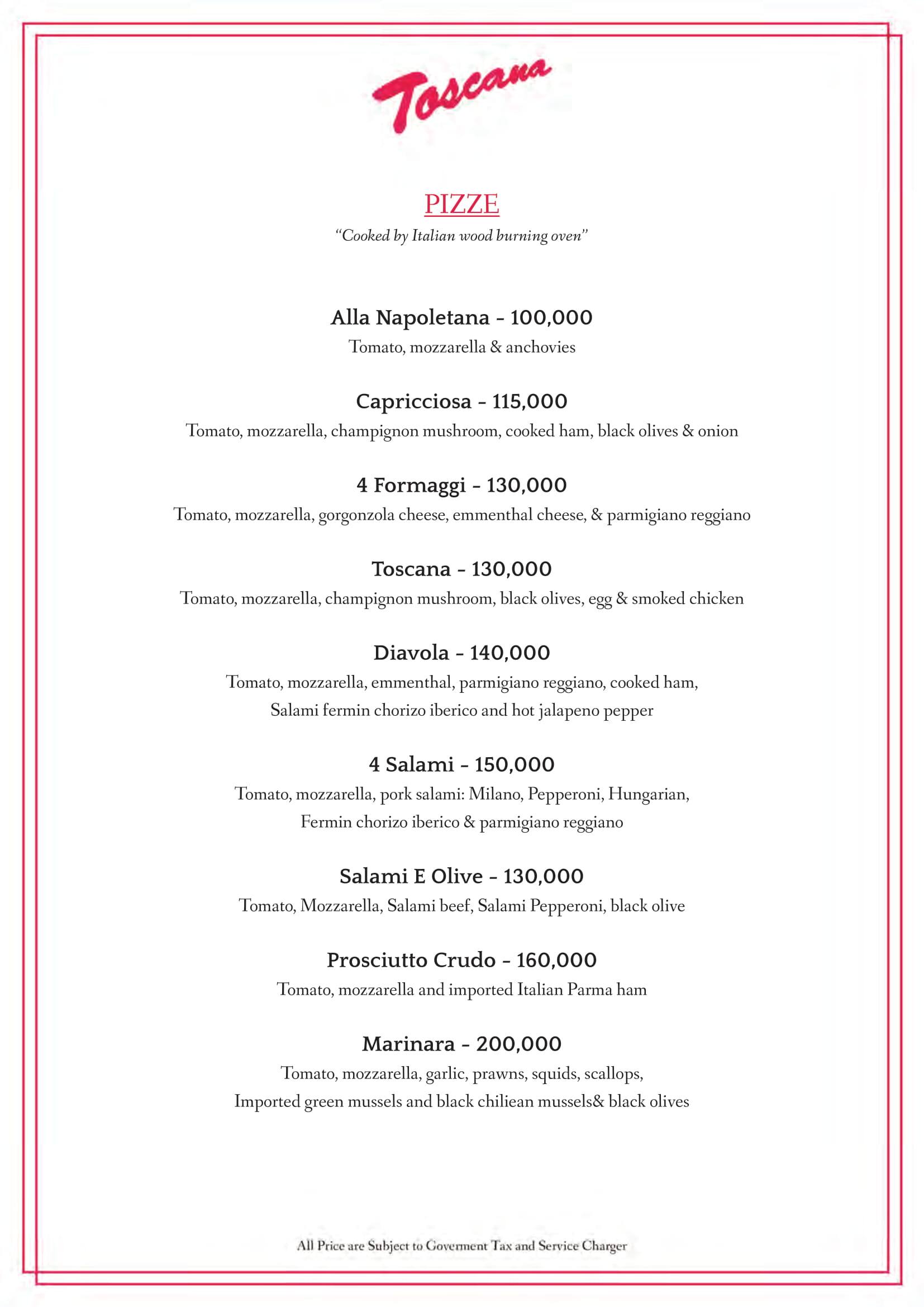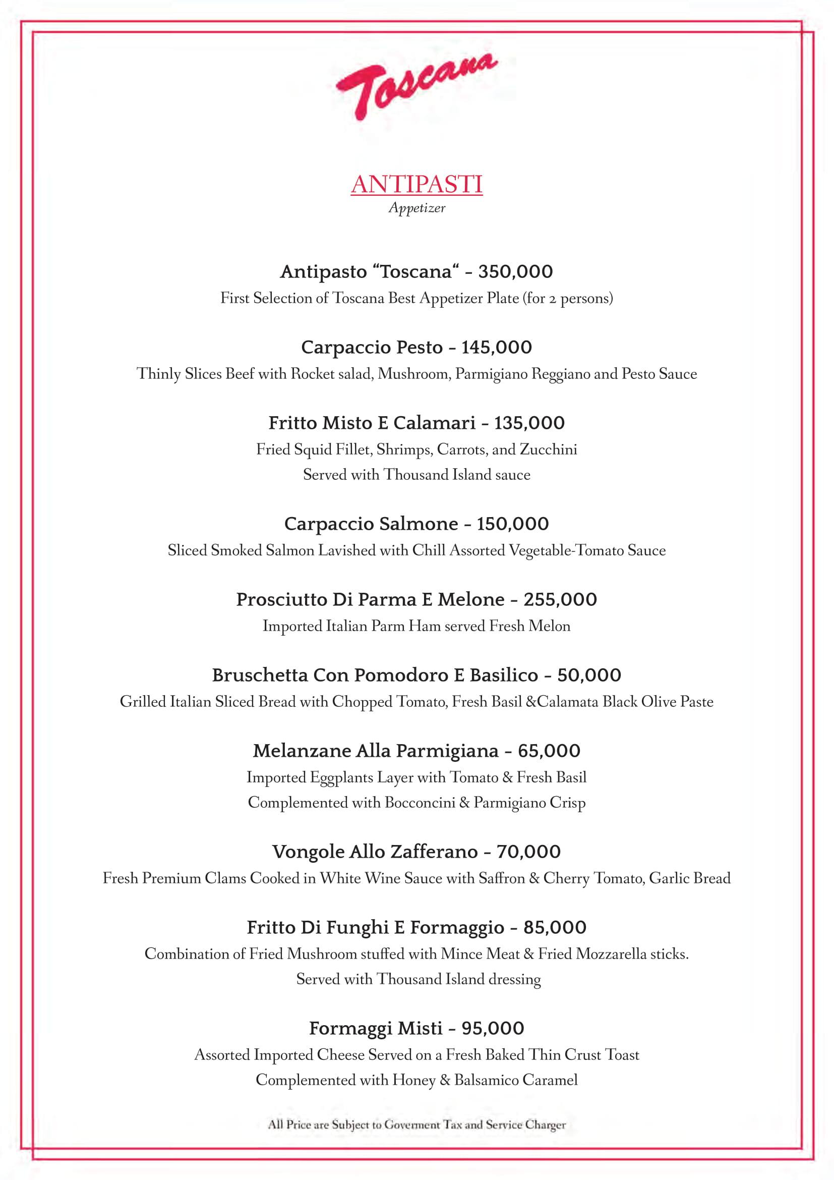 toscana menu