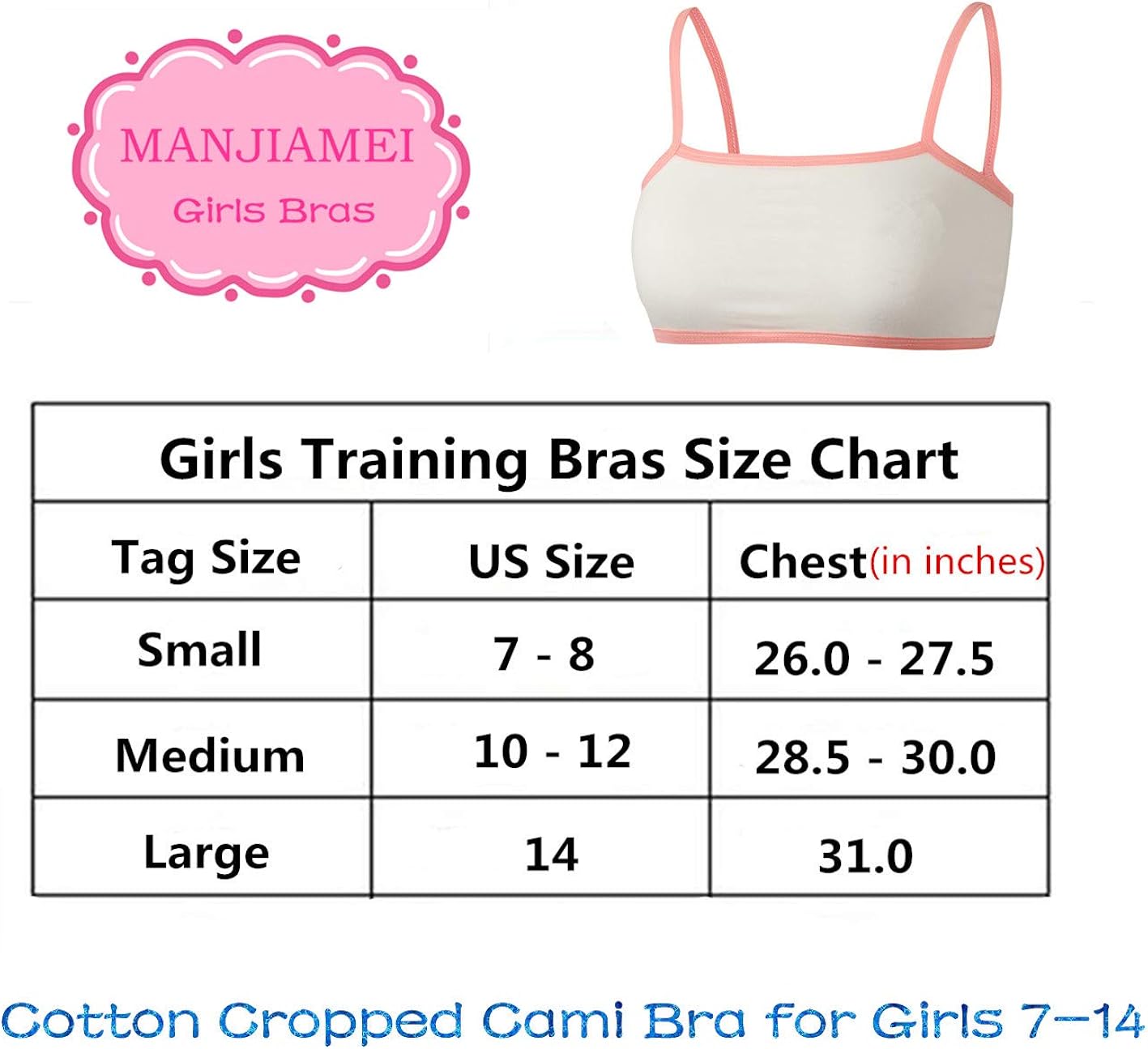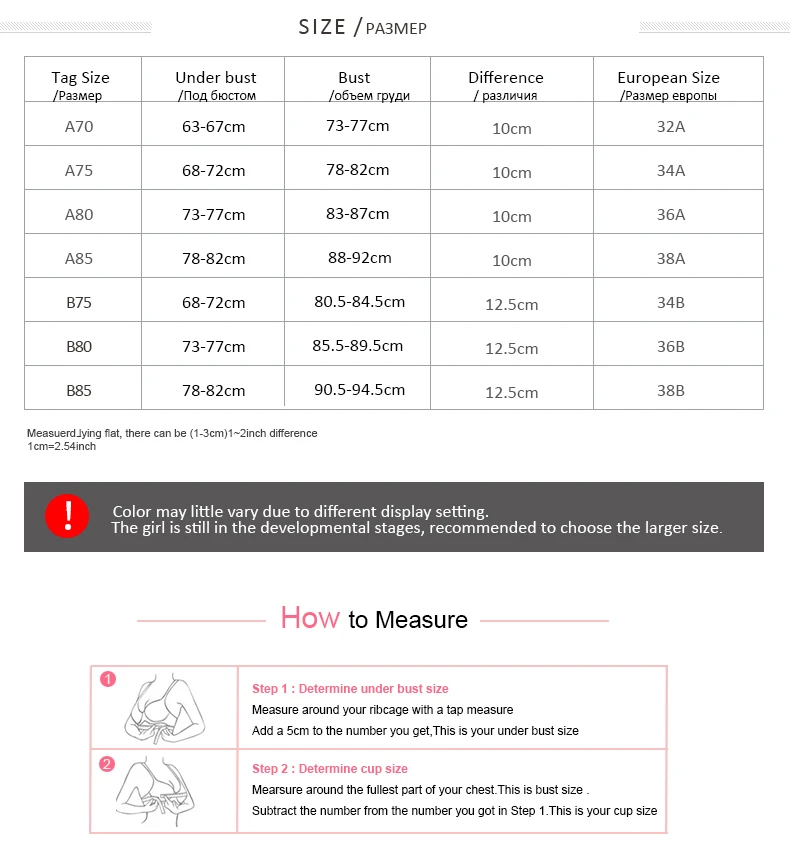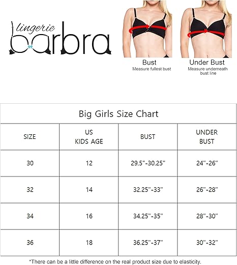 training bra size chart