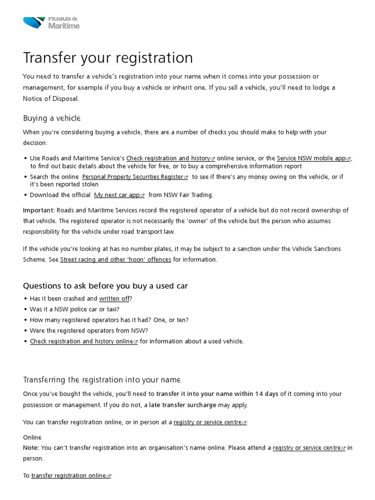 transferring registration plates from car to car online