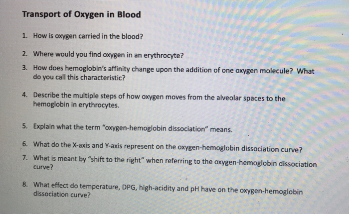 transport of oxygen in blood