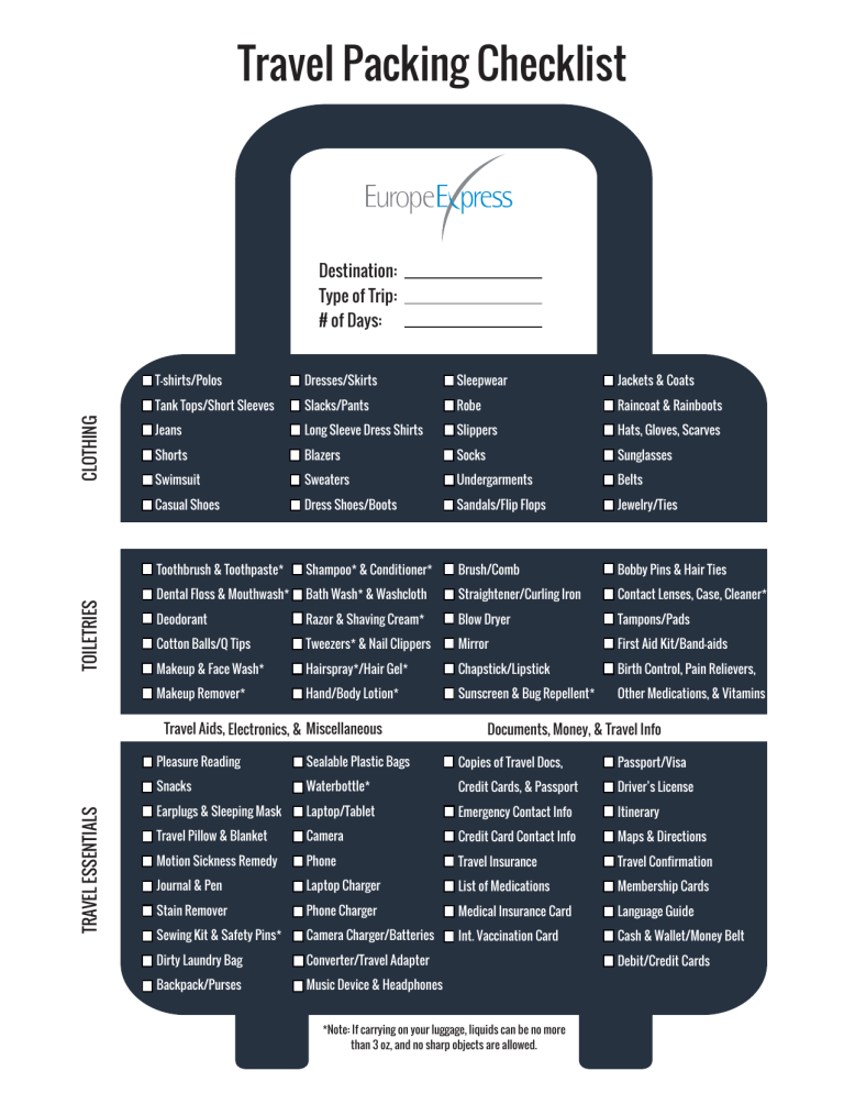 travel packing list
