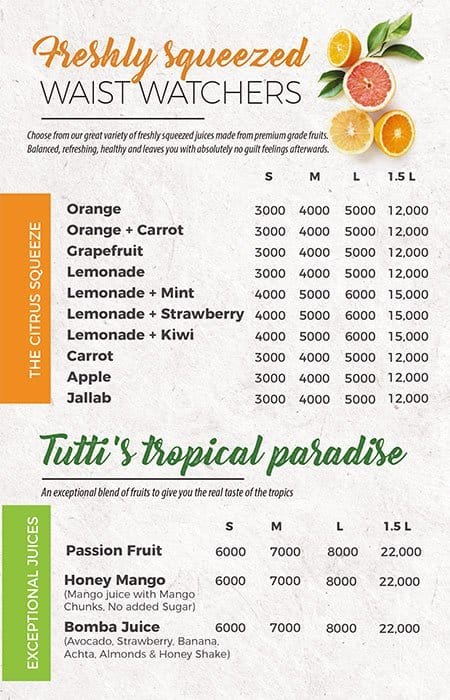 tutti frutti menu