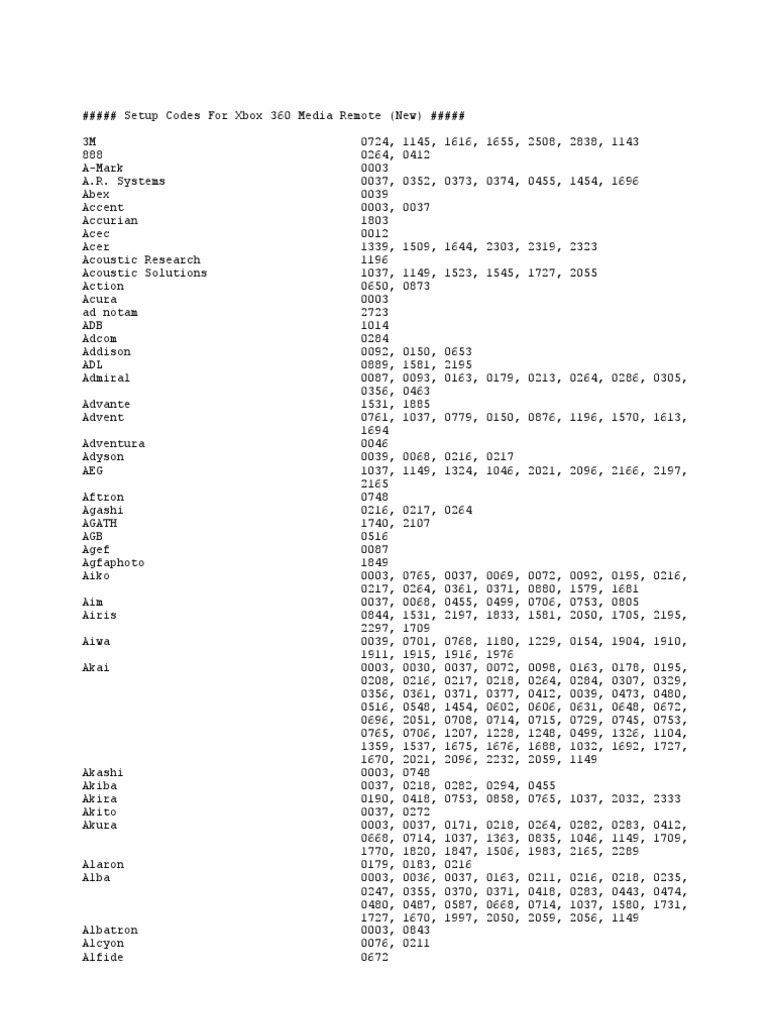 tv codes