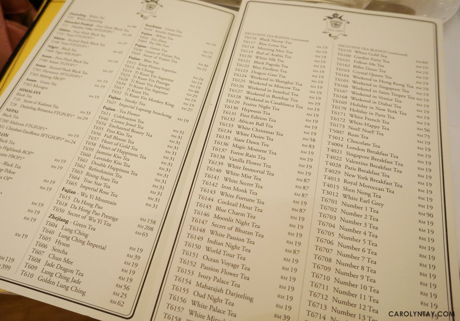 twg tea menu