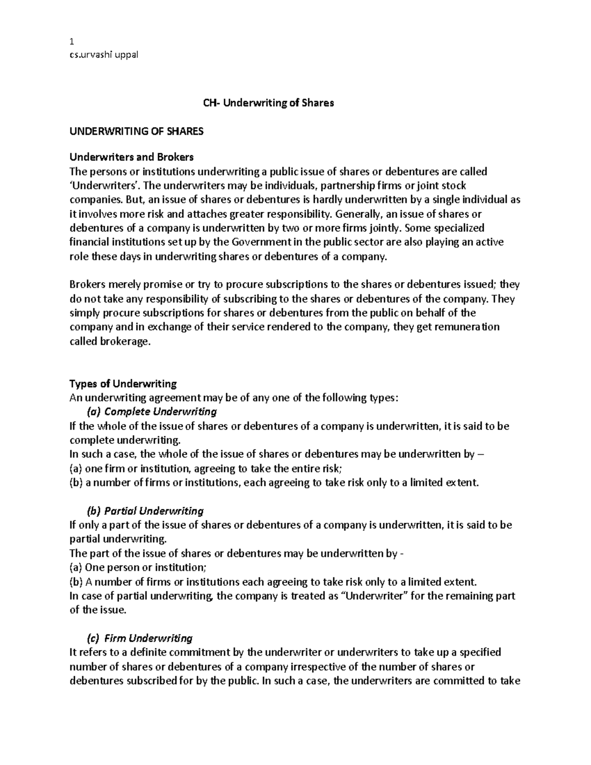 underwriting of shares