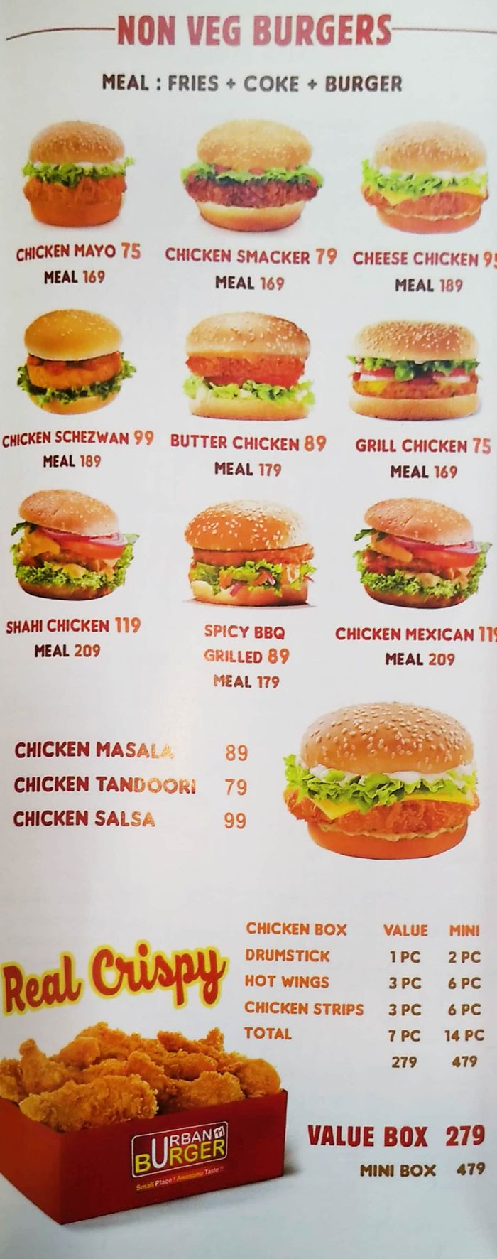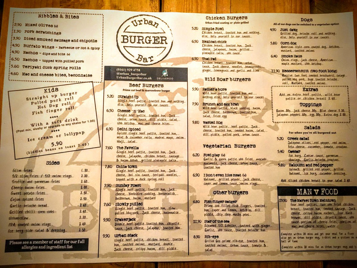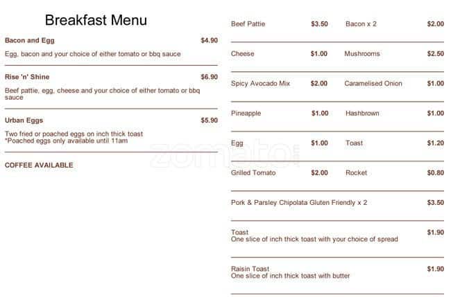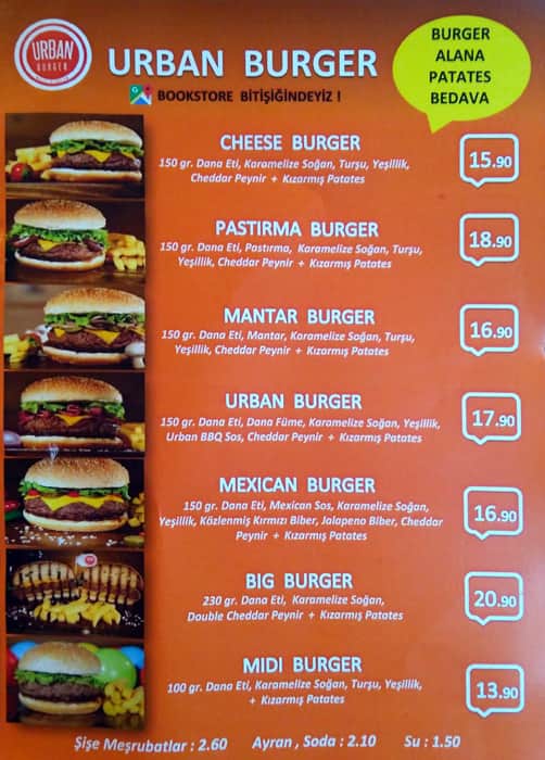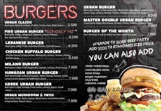 urban burger menu