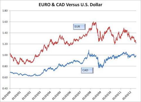 us dollar versus canadian dollar