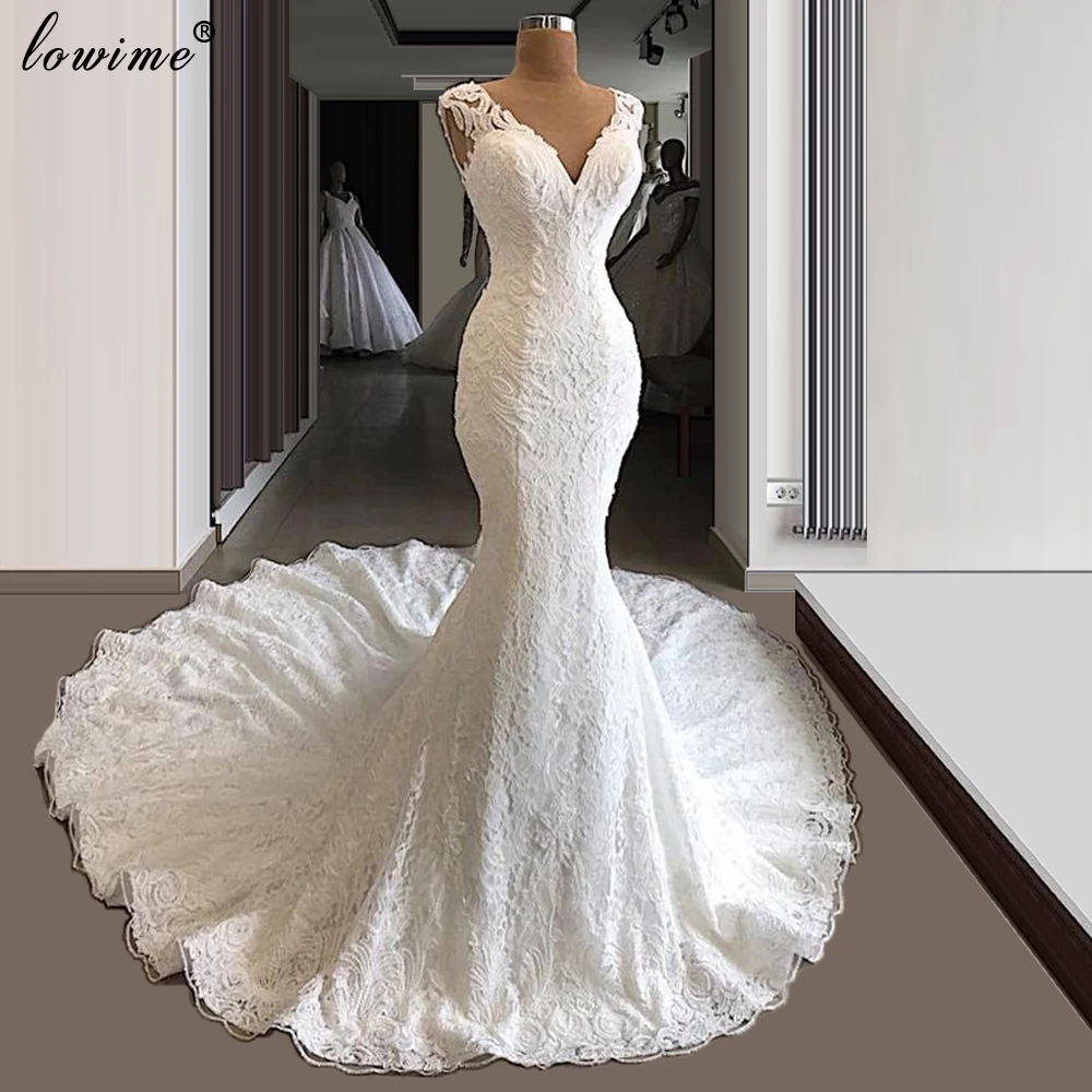 v neck lace wedding dress