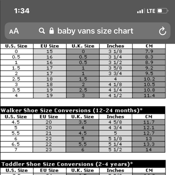 vans size chart cm